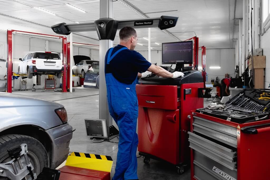 - Регулировка углов установки колес (развал-схождение)